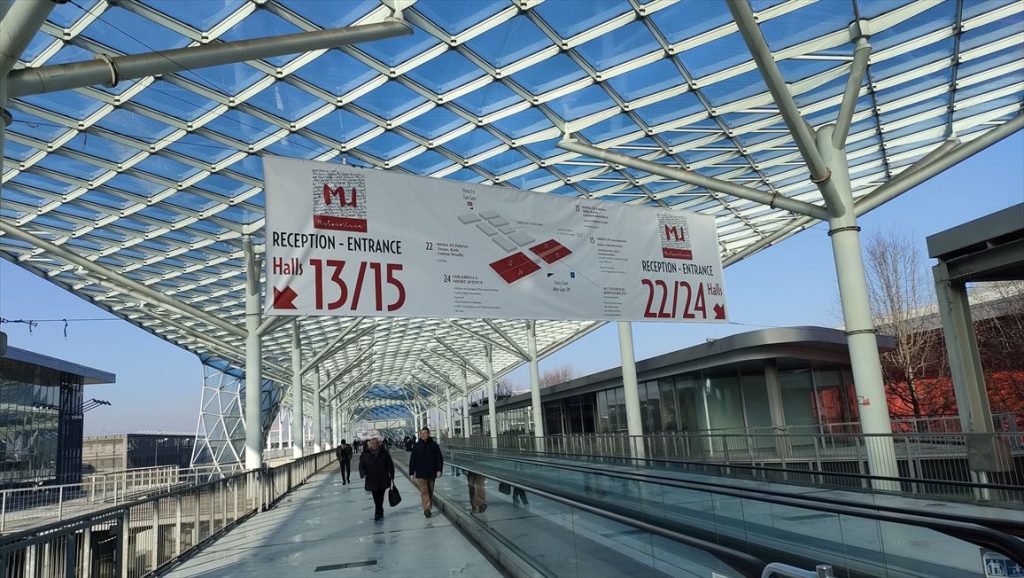 2月4-6日、ミラノで行われる世界最大規模のアパレル向けテキスタイル展示会「ミラノウニカ」に参加しました。世界中から出展者とバイヤーが集まります。上から4枚目の写真、当社の生地も中央のセレクションで取り上げていただきました。