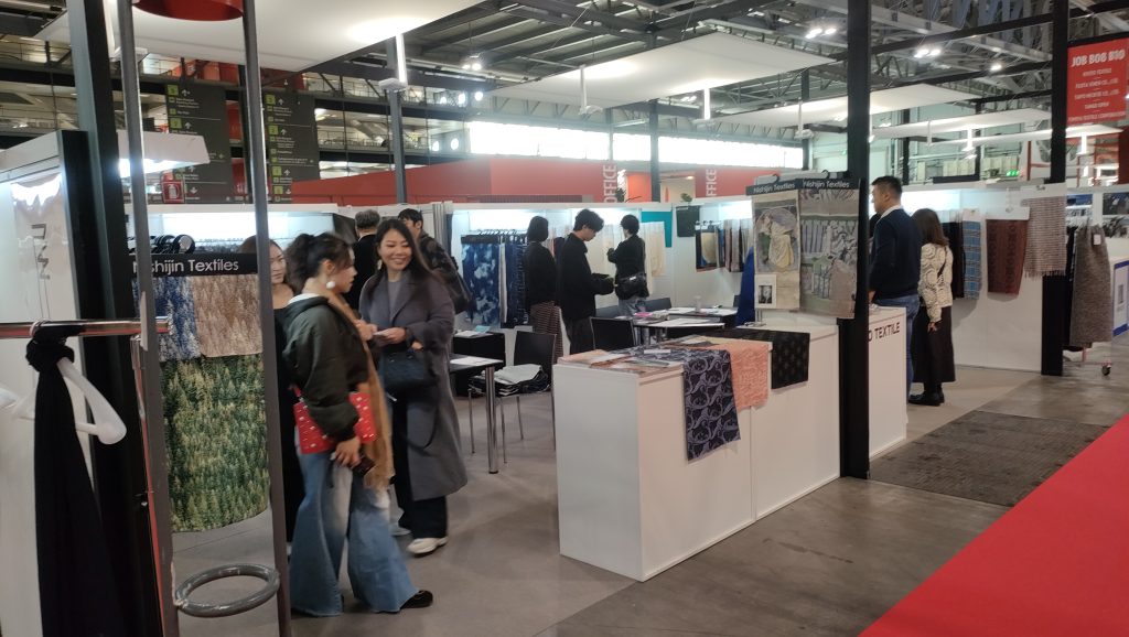 日本勢は一か所に集まり、日本のテキスタイルとして総合展示しています。