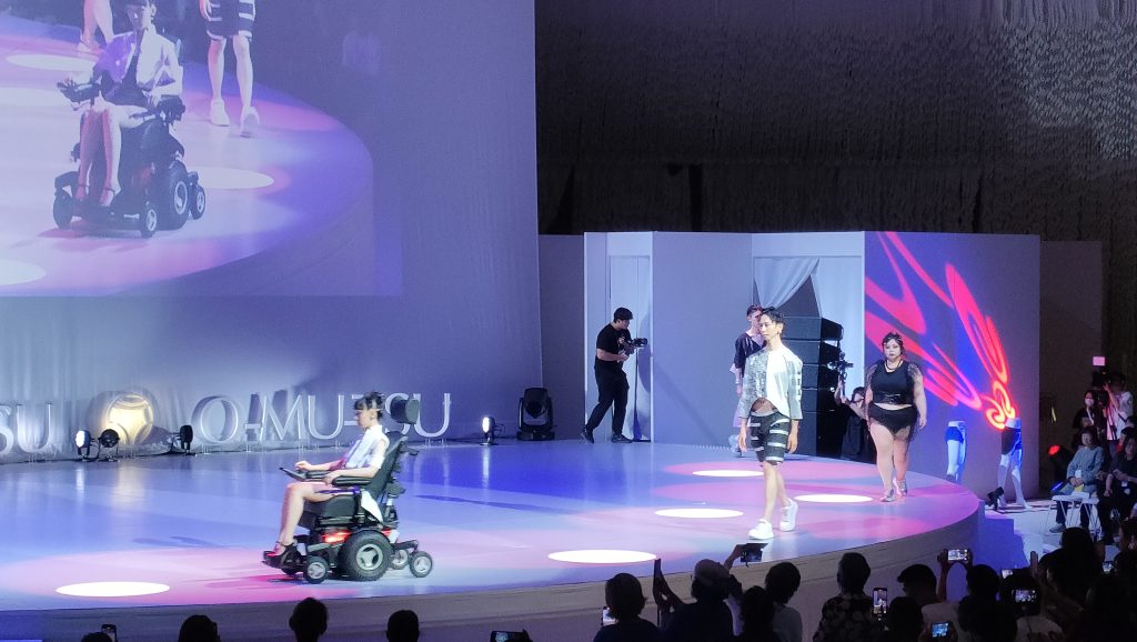 6月24日の大阪万博。「日本福祉医療ファッション協会」主催のイベントがシャインハットで開催され、当社の生地も出番をいただきました。テリー伊藤さんと、撮影禁止でしたが宇宙飛行士の金井宣茂さんがゲストで招かれ、楽しいトークショーもあり、すばらしいイベントでした。
